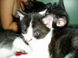 Jellybean was a great mom. She kept all her little beans close to her side, she always knew where they were, and was patient with them when they got into trouble. We thought about keeping her, because quite truthfully, once back at the SPCA, who would want to adopt an old cat when there's cute kittens around. But somehow, when she went back to the SPCA to get 'fixed', we lost track of her. There were complications and her wound became infected. The administrator was a little vague with the details. I'm still unsure if she was ever adopted or if she passed away due to complications. I could cry just thinking of the latter (Yes, Dog Woman can cry over a cat). My hope is that she lived a long happy life with a family who loved her, maybe still loves her? Let's think happy thoughts shall we? The kittens: